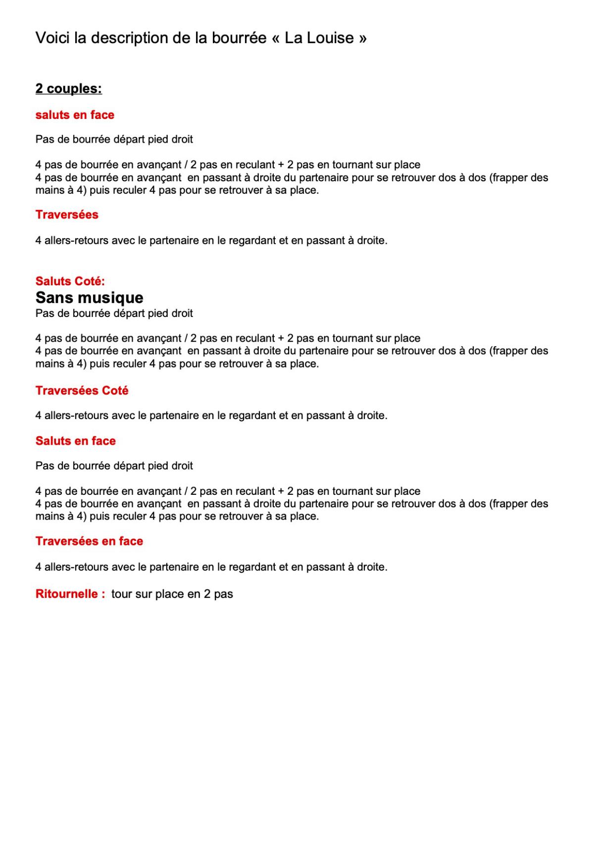 La Bourrée à 4 commence à 1mn 50s ; La Louise à 3mn 30s